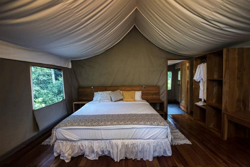 広々とした24棟のテントが敷地に点在。高床式の客室はスタンダードとスイートの2タイプで、全室にエアコンと暖房設備が備わり、専用バスルームも完備。電気も24時間供給されてており、照明やセキュリティーにも配慮が行き届いています。Wi-Fiはダイニング・バー、レセプション等パブリックエリアでのみご利用いただけます。