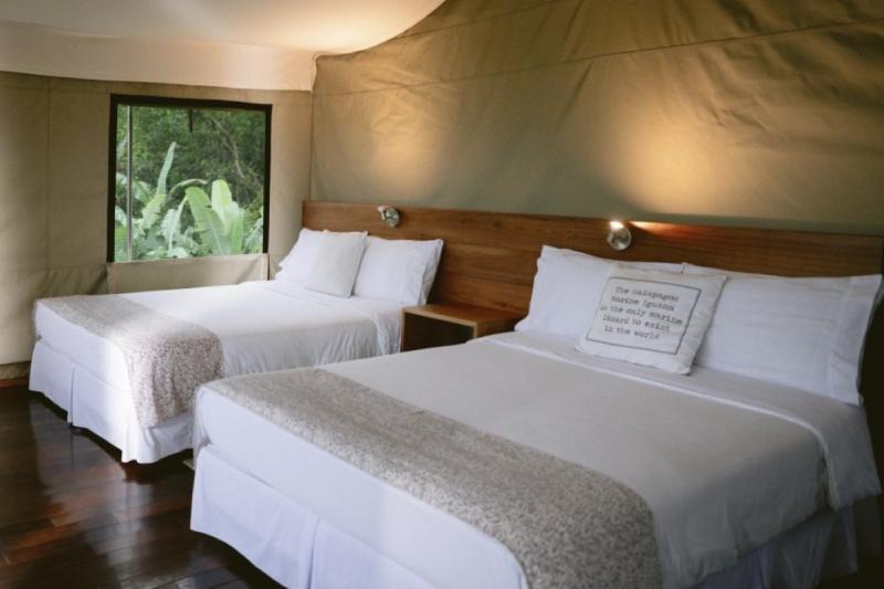 イザベラ島は6つの火山からなる大きな島で、ごつごつした溶岩の大地や神秘的なマングローブ林をはじめ手つかずの自然が残ります。スカレシア ロッジは高台に広がる16ヘクタールもの雲霧林の中に位置し、デッキからは豊かな緑と雄大な火山のパノラマを一望。サファリスタイルのテントは周囲の自然の中に溶け込むようにデザインされており、静寂の中で多様性に富んだ生態系を体感できます。