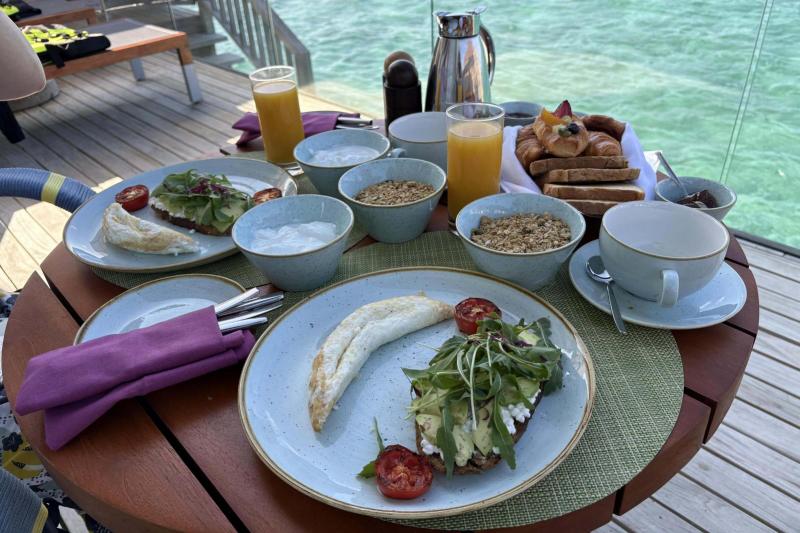 Aモルディブでは、部屋で朝食を食べることができるインヴィラブレックファーストや、カクテルなどのお酒の種類の多さが印象に残りました。
