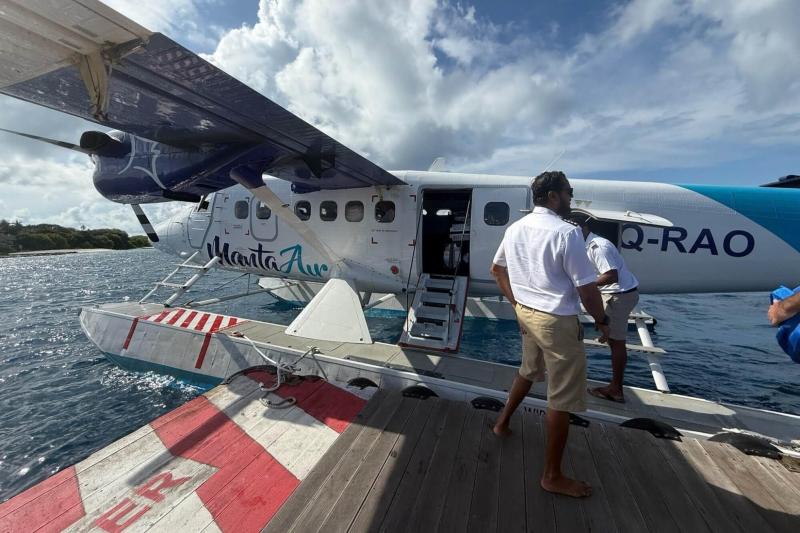 マーレ空港に到着しました。空港からすでに海がとてもきれいでしたが、アヴァニに着くと、さらにレベル違いでもっときれいでした!! マーレからは水上飛行機で40分ほどで、アヴァニへ到着します。