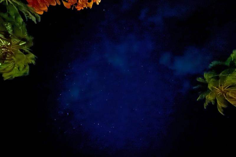 雨季だったのに、毎日晴れて最高でした。夜も心地よい気候で、デッキでお酒を飲みながらビーチベッドに寝転び、この景色を存分に味わいました。