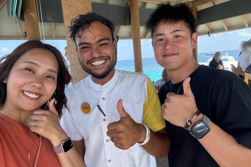 ハネムーンは、海のきれいなところに行きたいと夫婦で話をしていました。そんな時に、お世話になっている先輩夫婦がティースタイルでモルディブに行かれていて、写真を見せてもらったことから、ティースタイルの永井さんを紹介していただく運びになりました。お電話でのやり取りでしたが、電話越しに伝わる永井さんの魅力にひかれ、そのまま申し込みしました。