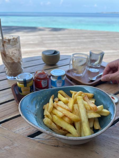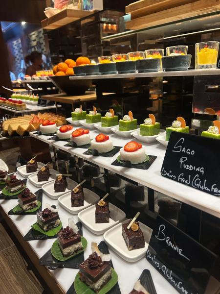 Aどのレストランでも食事が美味しかったです。スパイス系の味は得意ではないのですが、どの料理も口に合いました。水中レストランのコース料理、魚介や日本にはない南国のフルーツも美味しかったです。ライブキッチンも見ていてとても楽しいものでした。