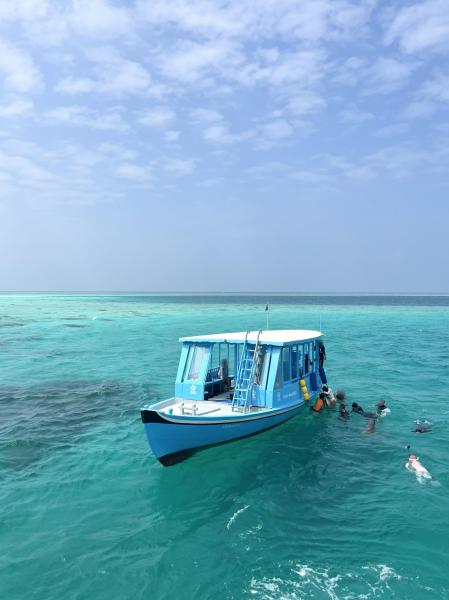 ご紹介いただいた「ヴィラメンドゥ アイランド リゾート&スパ」は、真っ白な砂浜があり、すぐ近くに素晴らしいリーフがあり魚も本当に多く、夢のような場所でした☆ 南国らしい写真を撮ることも、美しい珊瑚礁でお魚とスキンダイビング(素潜り)をすることも、どちらも楽しめ大満足です!!
