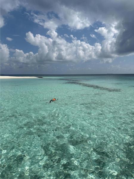 A着いた瞬間からモルディブの海に感動しました。何枚も写真を残したくなるような、本当に素敵な景色が広がっていました。シュノーケリングをした際に、きれいな海の中でサンゴや南国の魚を見られたのも思い出です。
