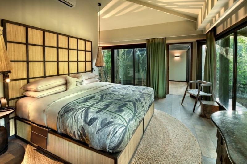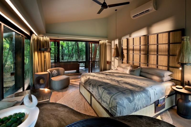 独特な生態系を持つ砂の森に佇むアンドビヨンド フィンダ フォレスト ロッジは、世界初のエコフレンドリーロッジのひとつとして知られています。客室の建設時に、森の木を1本も伐採しなかったという徹底した哲学が貫かれており、自然との共存を体現しています。床から天井までの大きなガラス窓が豊かな緑を室内に招き入れ、まるで木々の中に浮かぶ静かな隠れ家のような雰囲気を醸し出しています。